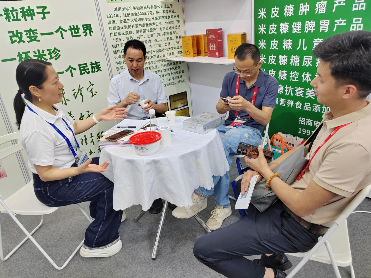 展会现场,湖南米珍宝以即食米皮糠创新原料为核心的产品矩阵引发行业热捧。其营养代餐系列、休闲食品系列及儿童营养食品三大品类,不仅吸引药厂、保健品厂、食品企业及原料出口机构的关注,更获旅游康养中心、慢性病管理中心等专业机构青睐。产品依托科学均衡的营养配比,成为大健康产业投资新热点,为国民慢性病预防与健康管理提供创新解决方案。